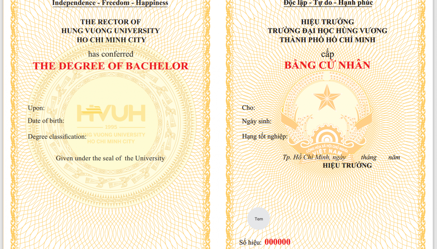 Ngoài ra, bằng đại học Hùng Vương có đầy đủ con dấu của Bộ Giáo dục và Đào tạo, dấu mộc tay, dấu giáp lai và chữ ký… nhằm đảm bảo trùng khớp với bản gốc nhất có thể. Vì vậy, rất khó để có thể phát hiện ra bằng đại học là giả hay thật nên mọi người có thể tin tưởng và an tâm về tấm bằng của mình.